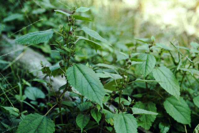 畑や路傍に生える一年生の草本。葉がクワに似ていることからこの名が付いた。茎は枝分かれしながら直立する。葉は長い葉柄があり、互生する。葉の表面に毛があり触ると全体がざらっぽく感ずる。9月頃葉えきに雄花と雌花の混じった球状の花を付ける。。