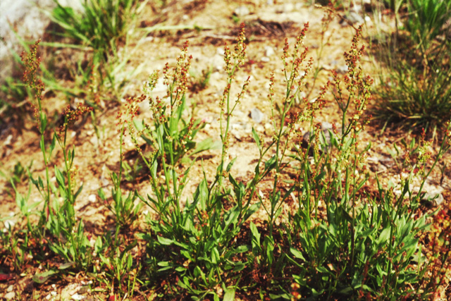 ヨーロッパ原産の帰化植物。道ばたや荒れ地、造成地に生えるが小国には近年になって入ってきた。茎は高さ50p位。葉は矛型で下部のものは柄がある。雌雄異株で5〜8月、茎の上部の葉腋から出る枝に小さな花をつける。