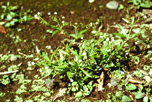 庭や畑に生える一年草。茎は枝分かれし、高さ25cm位になる。葉は下部のものは3輪生から5輪生で、上部のものは対生する。葉は倒披針形。7〜10月、枝の先に黄緑色の小さい花が咲く。果実は球形で中に細かい種子がある。和名は葉がザクロの葉に似ているので。