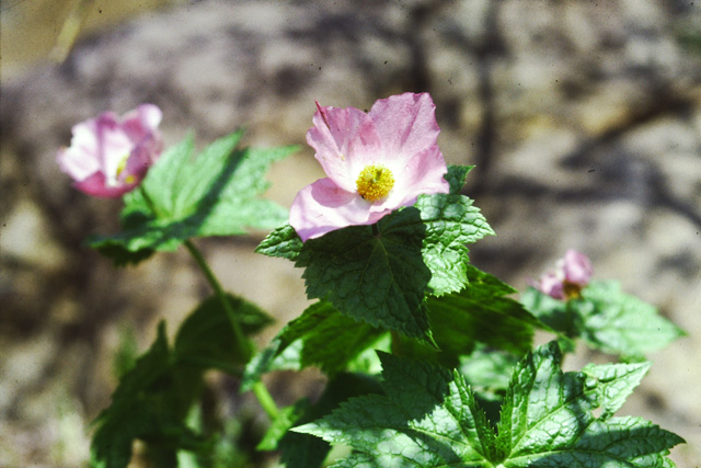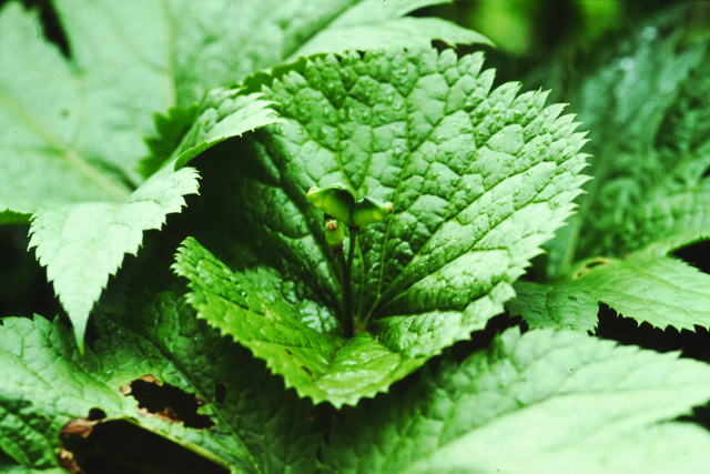 深い山の木陰に生える多年草。花時の茎の高さは30cm位。葉は有柄の2個と無柄のもの1個、掌状に7〜11中裂、さらに分裂しきょ歯がある。花は春、淡紫色の4枚のがく片が美しい。小国では八石山だけに生え、「はちこくぼたん」という。