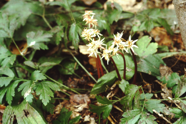 山の木陰に生える多年草。地下茎は太くひげ根を出す。根生葉は長い柄があり3出複葉でさらに切れ込む。小葉はやや厚くて光沢がある。花は早春、花茎に1〜3個つけ、白色の長いがくと小さい花びらがある。雌雄同株と異株のものがある。地下茎を漢方薬に使う。