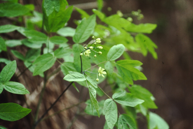 山の木陰に生える多年草。小国では八石山のみにある。地下茎は太く横こ伸び、節がある。茎は高さ70cm位。葉は3出複葉で「類葉牡丹」はその形から名付けられた。花は5〜6月、茎の先と葉えきに集まってつき、6枚の黄緑色のがく片の目立つ花が咲く。