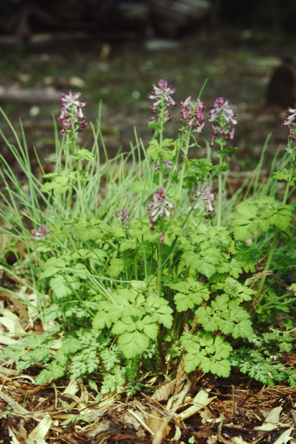 田や畑の付近、林の縁、やぶの中などに固まって生ずることが多い多年草。高さ20〜50p。葉は三角形で細かく切れ込む。4〜6月、紅紫色まれに白色の花を多数つける。果実は熟すと皮が急にまくれて黒い種子をはじき飛ばす。ウスバシロチョウの食草。