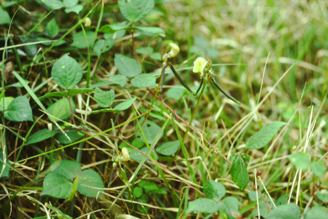野原に生えるつる性の一年草。葉は細長くて他物に巻きつく。葉は薄く卵形で2〜3裂する。花は淡黄色で8〜9月に咲く。実は熟すと黒くなり、中に黒色の種子が4〜10個ある。全体の形はアズキに似ていて、アズキが野生化したとも、アズキの原種ともいわれる。