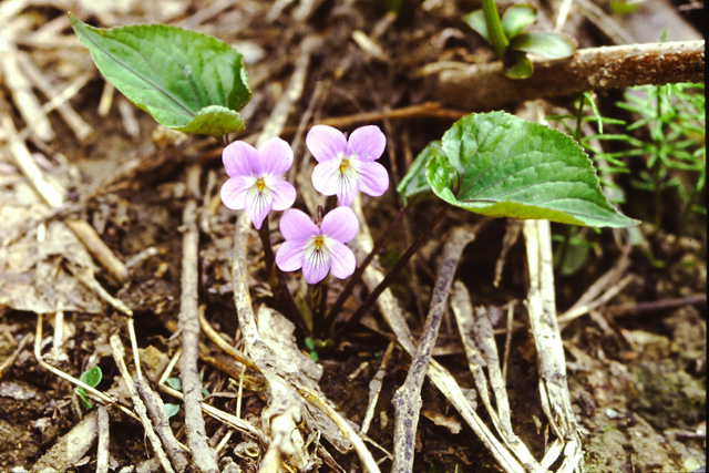 雪の多い地方の木陰に生える多年草。小国でも山地の林の中や山すそなどに、4〜5月の雪消え後、いち早く大輪で淡紫色の花を開く。地下茎は太くて横にはい、葉は花より少し遅れて開き、ハート形で大きくなる。果実ほ閉鎖花からできる。