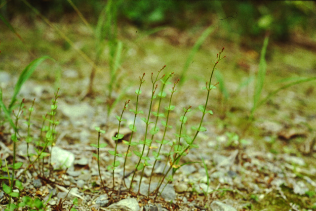 山の道ばたの日当りのよい草原に生える多年草。茎の基部ははい、上部は直立して10〜30cmで枝分かれする。葉は長さ6〜15mmの卵形で上部を除き対生する。7〜9月、茎の上部に黄褐色の小さな花が下向きに咲く。「ありの塔草」は花を昆虫のありに見立てた名。