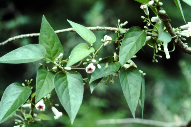 林の縁や道ばたに生える多年草。茎はつる性で他の物に巻きつく。葉は広卵形で対生する。花は夏に咲き、筒状で外面は白色、内面は紅紫色でお灸をすえた跡に似て「灸花(やいとばな)」という別名がある。果実は熟すと黄色になる。悪臭があるので「屁糞蔓(へくそかずら)」という。