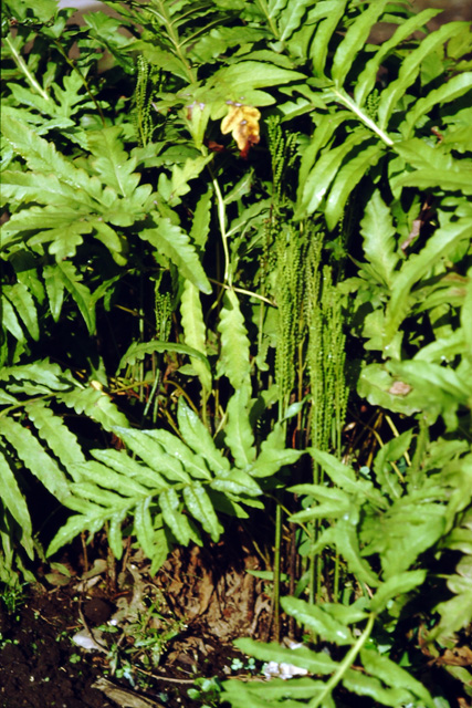 日当りのよい湿地、田の畔などに普通な夏緑性シダ。根茎が長くはい、群生する。栄養葉は1回羽状深裂。中軸に著しい翼があり、冬枯れる。胞子葉は粒が穂になったもので緑色から褐色に変わり越冬。粒の正体は中に胞子のうが包まれてできた球形の小羽片である。