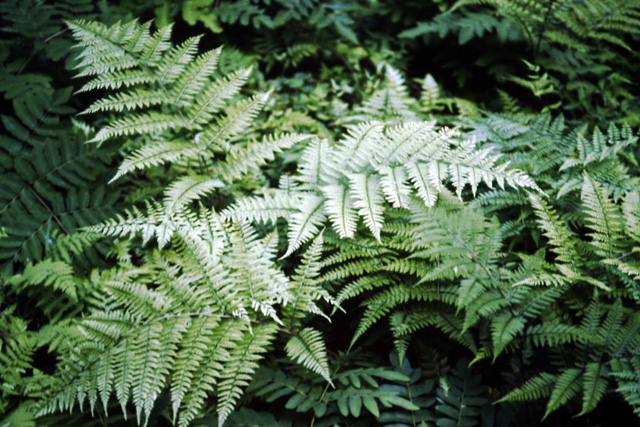 低山地の日当りのよい湿地に生える夏緑性シダ。葉は淡緑色でうすい革質無毛、長さ1m前後になる。葉身はほぼ三角形、3回羽状に細かく分裂して、水平に広く展開する。ヤマイヌワラビによく似るが、胞子のうを包む包膜の縁がギザギザに細裂することで区別できる。