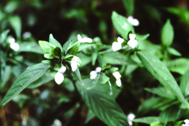 山の林の下に生える多年草。茎ほ四角形で高さ50cm位になる。葉は卵形から披針形で、林の中の弱い光を吸収できるように黒っぼい緑色なので「葉黒草」という。花は夏から秋に咲き、紅紫色で2唇形。実は2室で熱すと種子をはじき飛ばす。