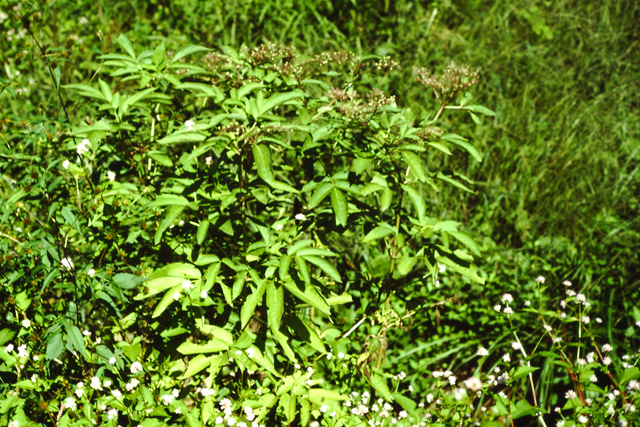 山の草地に生える多年草。茎は直立し1.5m位になる。葉は5〜7枚の小葉からなる。花は夏、茎の先端に多数密集して咲く。花序に黄色の腺体がある。葉や花がニワトコに似ているのでクサニワトコともいう。根、葉を干して薬用に用いる。
