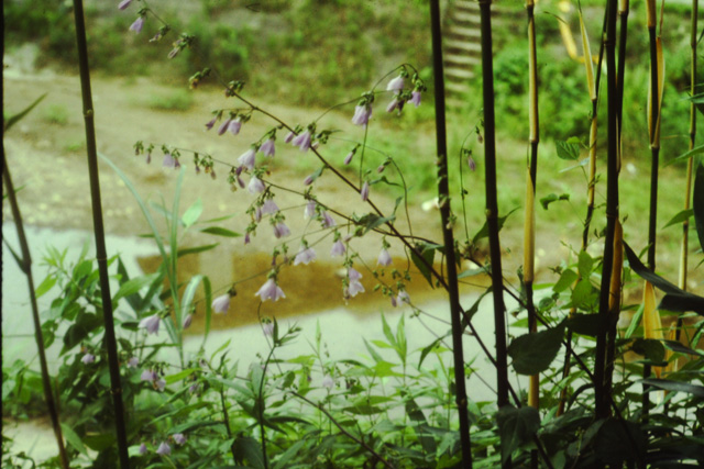 山の林の中に生える多年草。茎は高さ1m位になる。葉は互生し、柄があって卵心形で先が尖る。花は8月頃茎の先に円すい状につき垂れ下がり、紫色の鐘形で先が広がる。和名は形から「蕎麦菜(そばな)」といわれる。若芽を山菜にする。