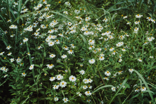 道ばたに生える多年草。地下茎が伸びる。茎はよく分枝し、生育のよいものは高さ1.5mにもなる。葉はうすくて羽状に切れ込む。花は夏から秋に咲き、舌状花は白色で、少し淡青紫色を帯びる。和名は「柚香菊(ゆうがぎく)」で柚の香りがする菊の意味。