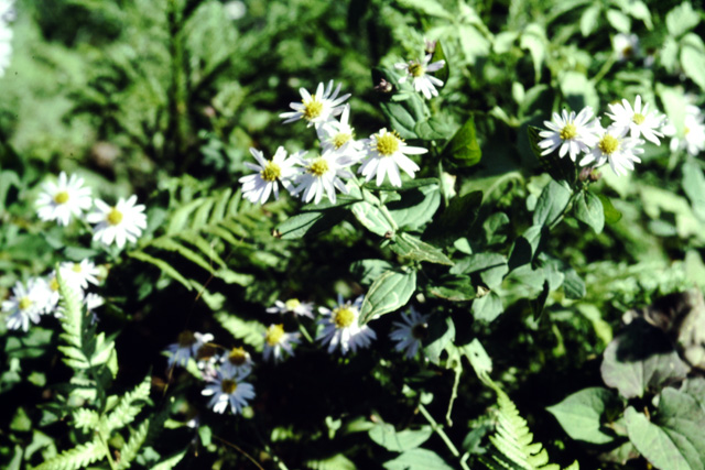 山の道ばたに生える多年草。茎はよく枝分かれして高さ1m位になる。葉は長だ円形で小さな硬い毛があり、さわるとざらつく。花は夏の終わり頃から秋に咲き淡青色。実に長い冠毛がある。小国の秋の「野菊」を代表する種。