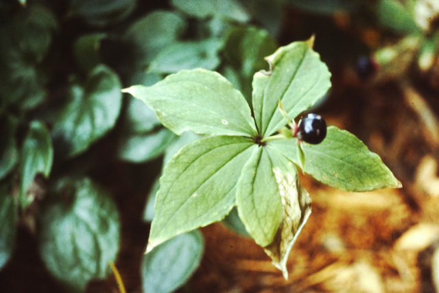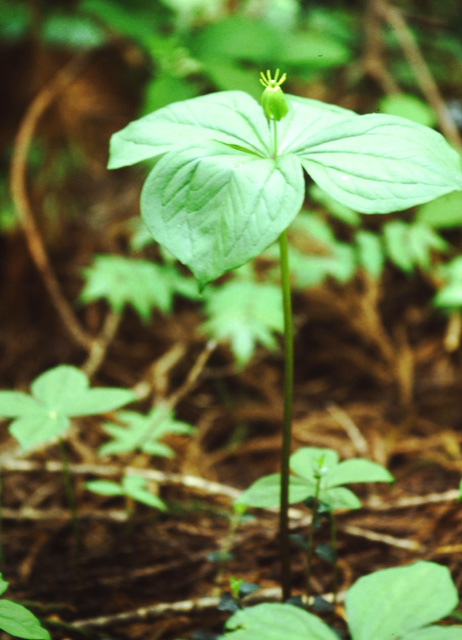 山地林内に生える多年草。ブナ林に多い。葉が4枚輪生した姿は一目でこれとわかる。花は初夏、茎の先に1個上向きにつく。がく片4、雄しベ8、先が4裂した雌しべがあり、花弁はない。日本海側のものは葉が大きく、花が小さめといわれる。小国ではややまれ。