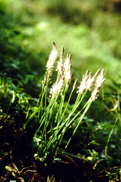 日当りのよい畑の縁や草地に生える多年草。地下に鱗茎があり、この鱗茎は役に立たないので小国では「馬にんにく」という。葉は2枚あり、厚みがあるが軟らかい。花は長い花茎に総状につき、淡赤紫色の6弁花が下から上に向かって咲く。