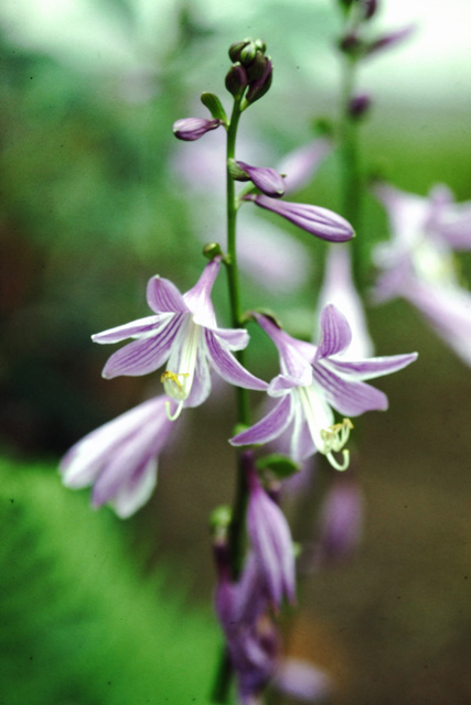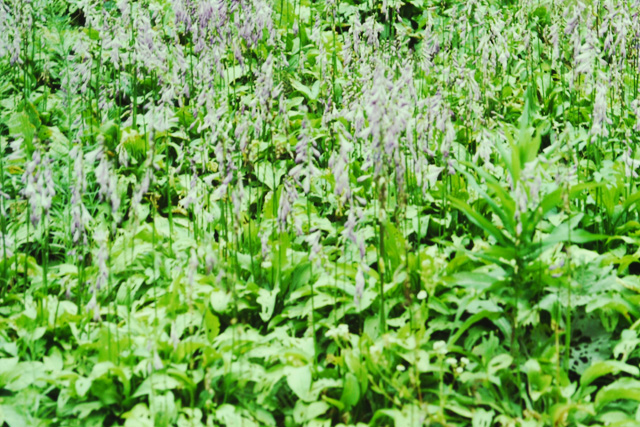 山の沢すじの湿地に生える多年草。根生葉は斜めに立ち、披針形から長だ円形で、葉脈は表面でへこみ、縁は長い葉柄に流れる。花は夏、長い花茎につき、花冠は薄紫から濃紫色で透明な筋がある。よく開いたときは裂片が反り返る。変化に富み、葉の縁の白い栽培種がある。