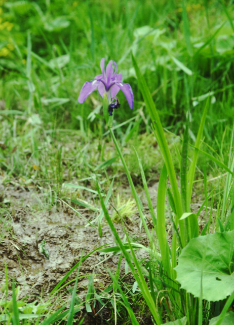 日当りのよい湿原、草原に生える多年草。葉は幅狭く、中肋が太くてよく目立つ。花は初夏、赤紫色で径10cm位。日本独自の園芸品ハナショウブの原種でアヤメ頼の中では変異性に富むことから多彩な品種が作り出された。小国では沢、水田近くの湿地にまれ。