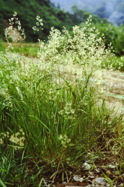 山の草地や道はたに生える多年草。茎はかたまって生え、繊細で軟らかく高さ50cm位になる。花は夏、細かい枝を分かち、先の方に小穂をつける。小穂が細かいので「山糠穂(やまぬかほ)」で、小国紙を漉き、紙干し板に張るときの刷毛(はけ)に用いた。