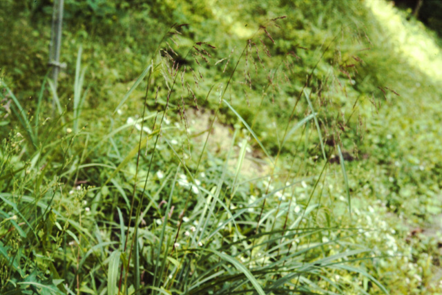山野に生える大形の多年草。高さ1m位。花は秋、柄の短い小穂と長い小穂がセットになって多数集まり、大きな円すい状の穂をつくる。ミヤマアプラススキに似るが、本種は穂の枝が垂れる。名は茎に油気があることから。小国では水田の土手などにまれ。