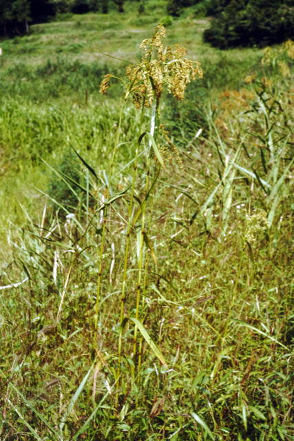 > 川の縁や湿地などに生える多年草。そう生して大株となり、高さ1m以上になる。花は秋、茎頂に大きな褐色の穂をつくる。小穂は長さ5mm程で全て単生する特徴がある。小国には小穂が2、3個集まってつくアブラガヤも産するが、本種はその北日本型である。